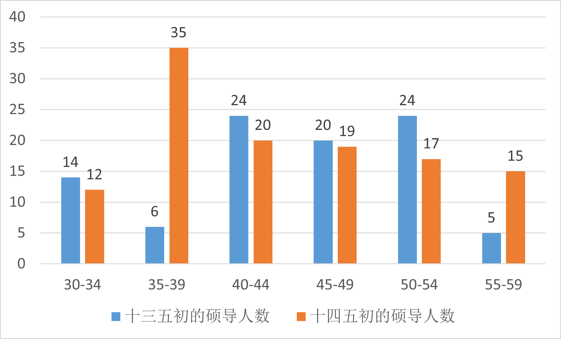 图3 “十三五”和“十四五”初期的硕士生导师年龄结构分布