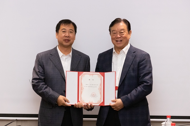 会议公布了稀土中心技术委员会成员组成:干勇院士为稀土中心技术委员会主任,黄小卫院士为常务副主任,严纯华院士和李卫院士为副主任,11位稀土稀有金属领域著名专家为委员。赵晓晨、王兴权为他们颁发了聘书。