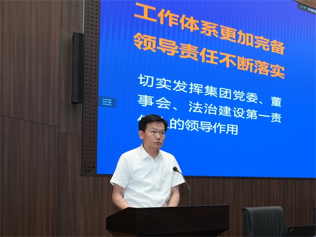法治工作取得的进展给予肯定。同时,也对集团下一阶段的法治工作提出了希望和要求。一是要深入贯彻落实习近平法治思想,切实发挥领导干部“关键少数”作用;二是要适应防范化解重大风险的要求,全面提升合规管理有效性;三是要适应提质增效稳增长要求,在加强案件管理、强化“以案促管”上持续发力;四是要适应新时代法治人才队伍建设的要求,切实加强法治工作组织体系建设;五是要适应中央企业国际化经营的新形势,全面加强涉外法治工作。