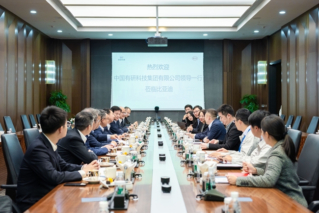 与比亚迪战略合作协议签约仪式在深圳坪山比亚迪总部举行。集团党委书记、董事长赵晓晨,比亚迪董事长兼总裁王传福,集团首席专家汪礼敏等参加仪式。集团副总经理黄倬和比亚迪基础科学研究院总经理宫清分别代表双方签署战略合作协议。