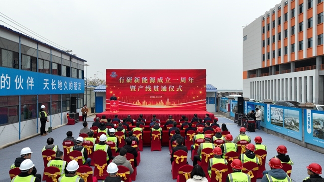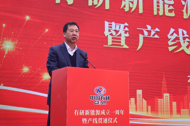 仪式上,有研新能源总经理张向军介绍了项目情况和工作进展,胡建军、胡军分别致辞,表达对公司成立一周年和产线贯通的祝贺。
