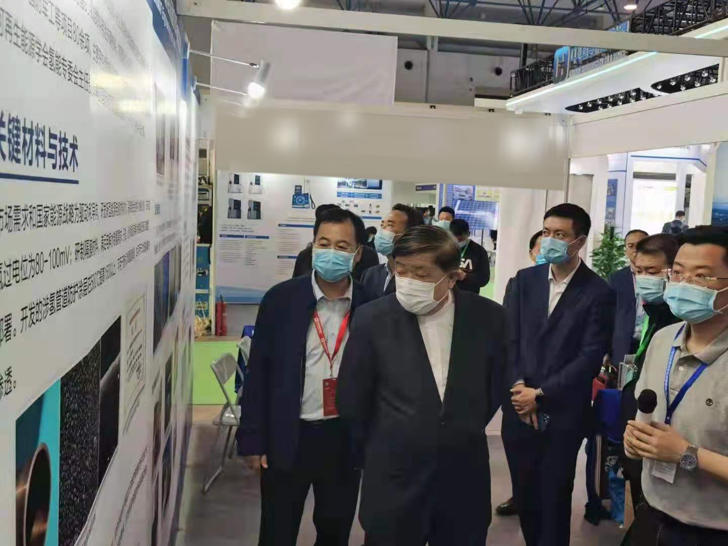 在赵晓晨的陪同下,徐冠华院士参观了同期举行的中国国际氢能源及燃料电池产业展览会的有研集团展台,深入了解集团在氢能领域的整体布局以及在制氢、氢防护、储运氢、气体纯化、燃料电池等领域的核心技术研发情况和示范应用情况,并就基于固态储氢技术的大巴车、冷链物流车以及叉车等相关技术问题进行了深入交流。