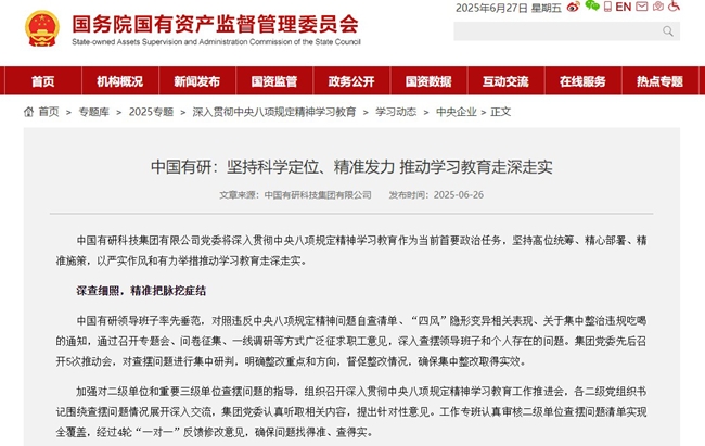 党委始终将学习教育作为当前首要政治任务,坚持高站位组织领导、高质量学习宣贯、高标准查摆整改,将集团党委“一流标准、眼睛向内、求真务实”的作风要求切实融入学习教育各环节,全力推动学习教育走深走实,以作风建设新成效赋能集团高质量发展。有关工作4次获中国共产党新闻网、国务院国资委官网宣传报道。
