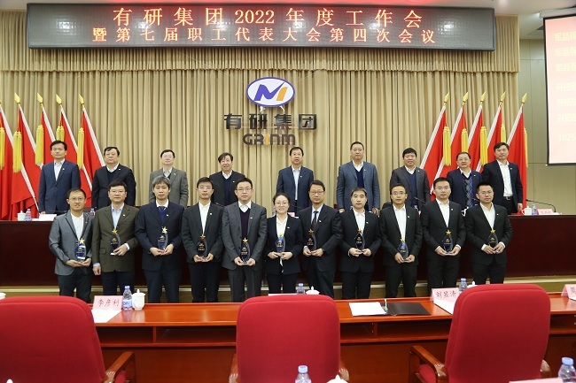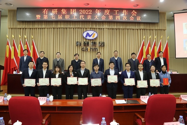 会议通报表彰了集团2021年度获得全国荣誉称号的集体与个人,2021年度获得省部级奖励的项目,宣读了2021年有研集团先进集体、优秀团队、先进个人和优秀员工表彰决定,并进行了现场颁奖。