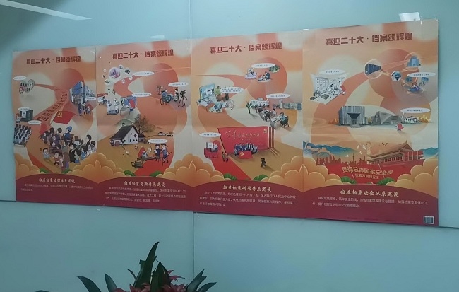 在档案宣传月期间,有研集团总部和各所属公司以张贴“喜迎二十大·档案颂辉煌”主题宣传挂图的形式,大力宣传档案治理、档案资源、档案利用和档案安全“四个体系建设”工作,认真贯彻依法治理、拓展资源、方便服务、安全底线的理念。同时利用网络信息以卡通漫画的形式自制了宣传材料,在总部和各所属公司宣传屏幕上循环播放,使档案业务知识变得更加生动、有趣。