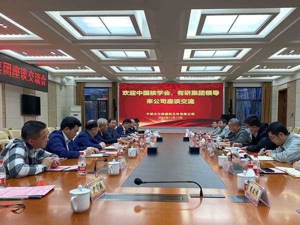 有研集团办公室、科技发展部、有研资环院、有研复材等相关人员陪同访问。中核北方公司办公室、科研部、计划部、冶金研究所、理化检测中心、AP1000元件厂等负责人参加座谈。