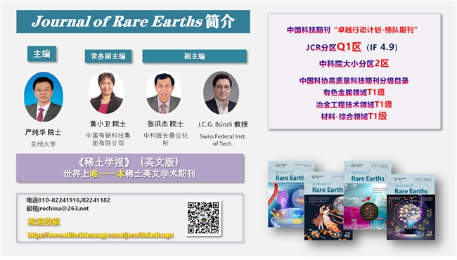 Journal of Rare Earths 2022年度影响因子4.9,同比增长6%,在JCR应用化学学科(Chemistry, Applied)中排名为17/72,同比提升1位,连续两年进入Q1区;总被引频次8043次,同比增长8%。