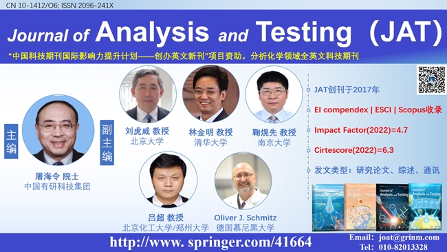 Journal of Analysis and Testing 2022年度影响因子4.7,首获影响因子,在JCR分析化学学科域(CHEMISTRY, ANALYTICAL)中排名为17/72,位于Q1区。