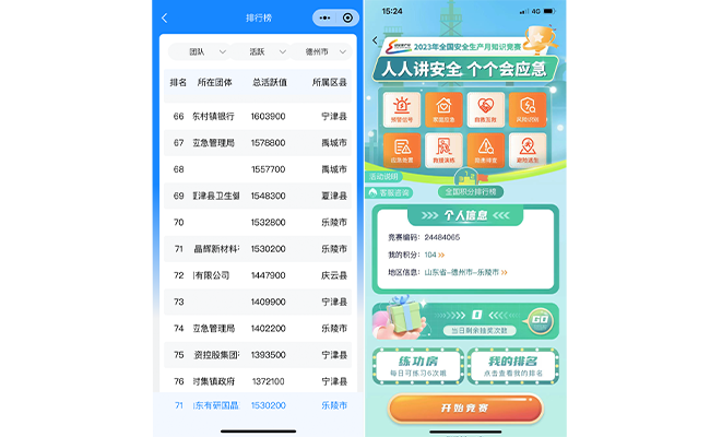 组织参加应急普法知识竞赛和全国安全生产月网络知识竞赛,通过参加竞赛,不断积累安全知识,熟悉相关法律法规、标准、规范内容,从而梳理底线思维,提高全员安全意识。