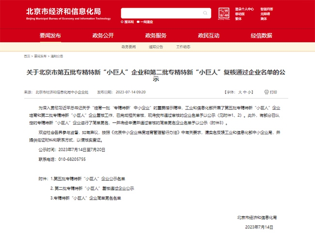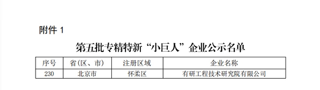 根据工业和信息化部统一部署,7月14日,北京市经信局发布了北京市第五批专精特新“小巨人”企业公示名单,有研工研院成功入选国家级专精特新“小巨人”企业。