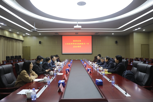 11月29日,江西省科学院党组书记、院长宋德雄,总工程师古和今一行5人到有研工研院调研交流。有研工研院党委书记、董事长米绪军,党委副书记、纪委书记姚国成,副总经理张永安参加座谈交流。