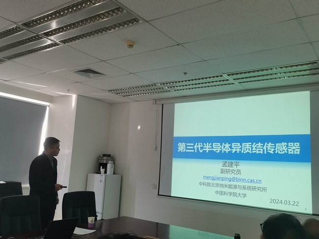 为进一步深化研发人员对传感器的系统认知,提升理论水平,3月22日,有研工研院电子事业部邀请中国科学院北京纳米能源与系统研究所副研究员孟建平开展学术讲座,报告围绕“第三代半导体异质结传感器”展开。会议由有研工研院技术总监刘晓鹏主持,事业部负责人、相关职工和研究生20余人参加。