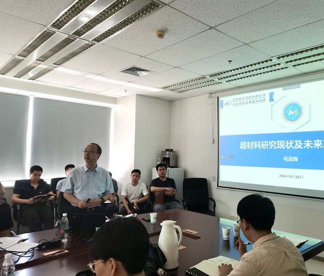 副总经理、智能传感功能材料国家重点实验室主任毛昌辉作《超材料研究现状及未来发展展望》专题讲座。有研工研院党委书记、董事长杨志民出席会议。会议由电子事业部党支部书记、总经理杨剑主持。会议以线上线下相结合的方式开展,有研广东院和电子事业部相关领域职工及研究生60余人参会。