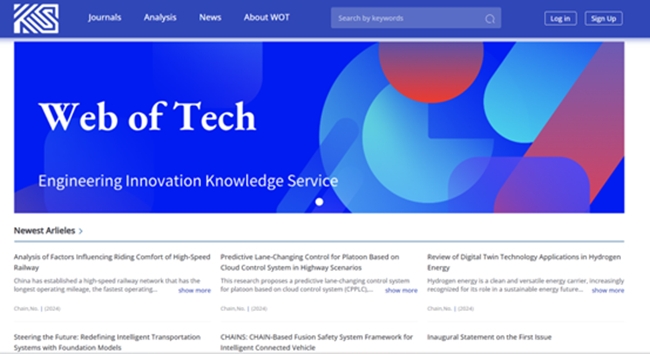 “Web of Tech”平台(www.weboftech.com),面向全球,共计收录国内期刊93万余篇、国外期刊50余万篇英文题录,可实现研究趋势、科研选题、期刊发文分析等功能,成为本领域一流期刊展示和行业资讯传播的重要窗口。