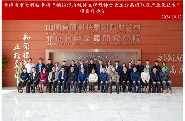 10月12日,青海省重大科技专项“铜铅锌冶炼伴生稀散稀贵金属分离提取及产业化技术”项目启动会在北京怀柔有色金属新材料科创园召开。会议由项目牵头单位西部矿业集团科技发展有限公司主办,有研资源环境技术研究院(北京)有限公司作为主要课题牵头单位协办。