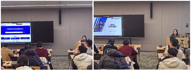 科技信息服务平台”的使用方法,针对基于语义的智能检索、AI智能助手、个人中心功能以及EBSCO-STMS数据库检索、阅读及辅助工具应用等进行了详细地讲解和演示,并对参训人员进行了答疑和交流。