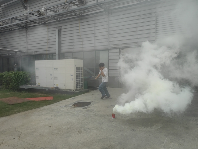 演练以模拟动力电池检测团队仓库起火为场景,进行火灾初期扑救、应急人员疏散、与消防队协同配合火灾扑救、伤员紧急救治、现场恢复等全流程演练,通过此次演练旨在全方位提升参与者的应急处置能力。同时还安排职工进行灭火器的实操演练,确保职工熟练掌握消防器材的实际操作等多个环节。