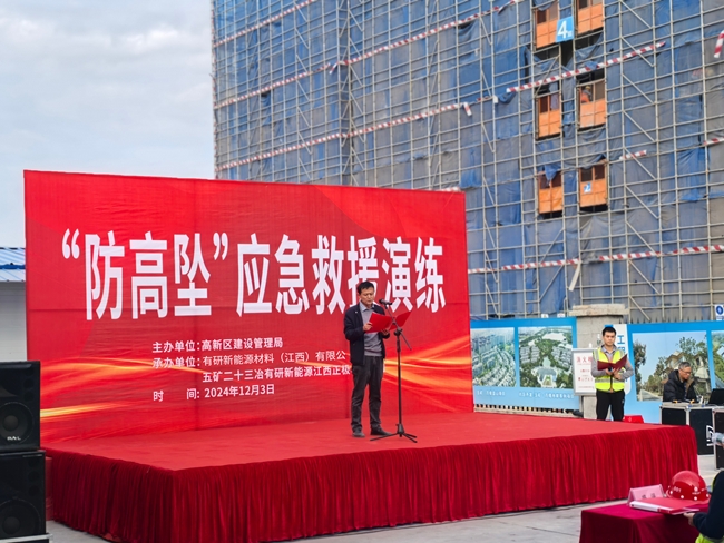 为增强全员安全防范意识和提高应急处置能力,强化应对各类施工灾害事故的自救和抢险技能,提高快速应急救援能力以及协同作战能力。12月3日,新余市高新区建设管理局联合有研新能源、五矿二十三冶三公司在有研新能源项目现场开展“防高坠”应急救援演练。新余市高新区建设管理局局长涂维国、有研新能源总经理张向军、五矿二十三冶三公司常务副总经理陈磊以及各工程项目代表和工程安全监督机构代表共100余人现场观摩了演练活动。