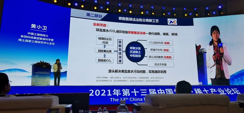中国工程院院士、有研集团首席科学家、稀土国家工程研究中心主任黄小卫,以《科技创新助力稀土产业绿色高质量发展》为题做了主旨演讲。重点介绍了稀土行业发展态势、稀土矿提取分离技术创新及应用进展,以及稀土行业发展新动向和新趋势。