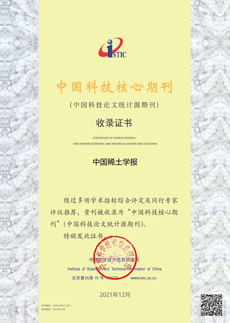 《稀有金属》2020年度核心影响因子1.213,较上一年度(0.955)增长27%,在23种金属材料类期刊中排名第三,较上一年度(4/23)提升1位,核心总被引频次1580,较上一年度(1382次)增长14%;《分析试验室》2020年度核心影响因子1.018,较上一年度(0.911)增长12%,在11种冶金工程技术类期刊中排名第四,再次入选2020年“百种中国杰出学术期刊”,已连续三年获得此称号;《中国稀土学报》2020年度核心影响因子1.118,较上一年度(1.059)增长6%,在29种材料科学类期刊中排名第三。