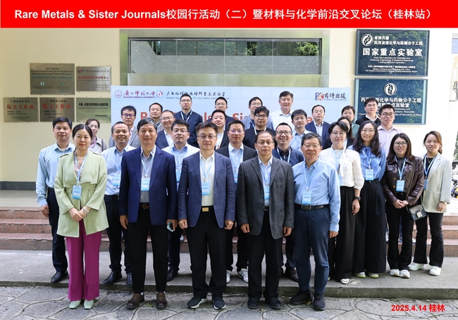 为加强学术对话与合作,促进科学技术创新发展,Rare Metals & Sister Journals校园行活动(二)暨材料与化学前沿交叉论坛(桂林站)于4月14日在广西师范大学举行。本次活动由Rare Metals & Sister Journals、广西师范大学广西低碳能源材料重点实验室联合主办,Rare Metals副主编、中山大学材料学院院长侯仰龙担任会议主席,广西师范大学广西低碳能源材料重点实验室主任李庆余担任执行主席。会议以“多学科交叉的功能材料化学”为主题,吸引近百位相关领域专家学者、青年科研人员及研究生参与。