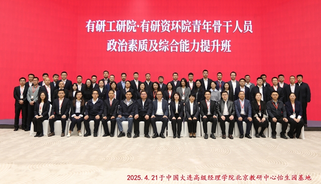 为深入贯彻落实习近平总书记关于加强干部人才队伍建设的重要论述精神,着力培养政治过硬、本领高强的复合型人才队伍,4月21日至25日,有研工研院·有研资环院联合举办青年骨干政治素质及综合能力提升班,组织中层管理人员、科研技术骨干50余人赴中国大连高级经理学院北京教研中心进行封闭式培训。