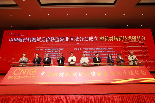 中国新材料测试评价联盟常务副理事长单位、国家新材料测试评价平台主中心国合通用测试评价认证股份公司党委书记、董事长赵春雷,副总经理金桥受邀参加会议。会上,赵春雷代表中国新材料测试评价联盟、国家新材料测试评价平台发表致辞,并共同参与湖北区域分会成立揭牌仪式。
