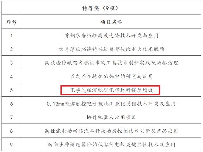 近日,中国机械冶金建材职工技术协会公布了2021全国机械冶金建材职工技术创新成果获奖名单,有研国晶辉“化学气相沉积硫化锌材料提质增效”荣获创新成果特等奖。