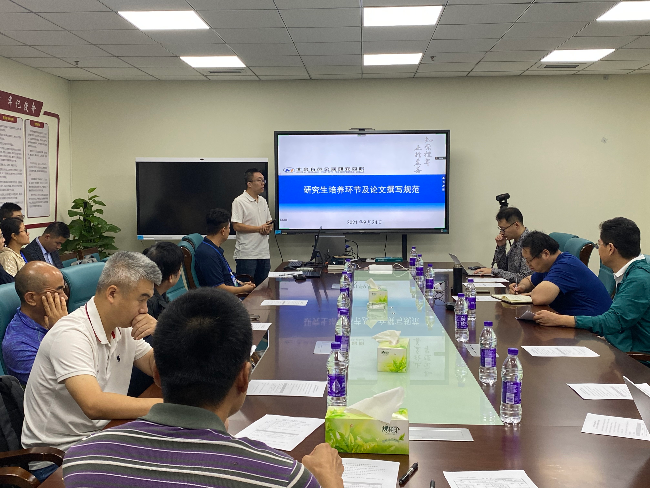会上,任传裕做了“研究生培养环节及论文撰写规范”主题培训,对研究生开题、中期、答辩等环节的内容、方式和要求等进行了详细解读,强调了2020级之后研究生申请学位科研成果要求的变化,回答了研究生密切关注的学术不端检测问题。关于论文撰写的规范性,任传裕以学术论文审查中常见的问题为例,强调了文字、页面、图表、公式及参考文献等有关注意事项,对同学们提出了严格要求。培训结束后,任传裕和与会人员针对培训内容和研究生管理目前存在的问题展开了讨论,为线上线下的研究生答疑解惑。