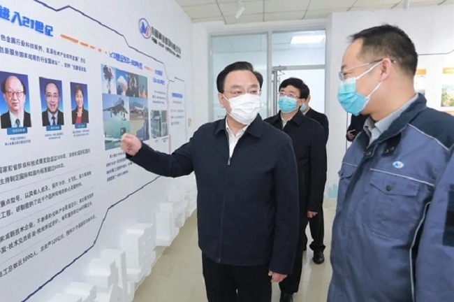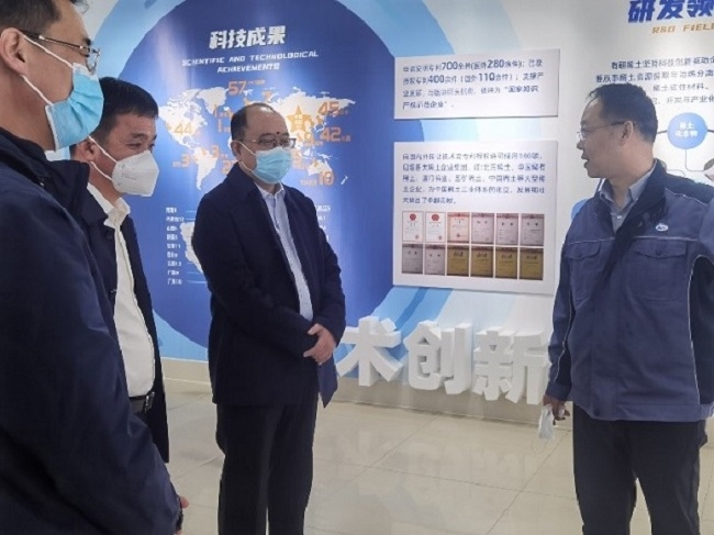 4月14日上午,威海市委副书记、市长闫剑波到有研稀土(荣成)公司调研疫情防控、企业经营状况,威海市副市长徐明等领导陪同。有研稀土(荣成)公司党支部书记、总经理马跃华介绍相关工作情况。