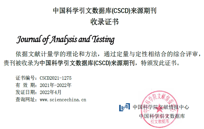 《分析检测(英文)》创刊于2017年,是中国第一本分析化学领域英文科技期刊,获“中国科技期刊国际影响力提升计划”D类项目资助。目前已被EI, ESCI, Scopus等国际重要数据库收录。