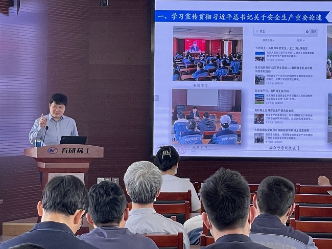 有研亿金总经理吕保国以“生命重于泰山”为主题、山东有研国晶辉总经理魏乃光以“安全生产法安全生产职责解读”为主题、有研国晶辉副总经理曹波以“履职尽责管安全,齐抓共管促发展”为主题、有研医疗副总经理廖赞以“新安法解读”为主题、乐山稀土总经理杨宏博以“提升本质安全,夯实安全基础”为主题、荣成稀土和青岛稀土总经理马跃华以“新安法培训”为主题,分别开展了安全大讲堂的讲解和培训。