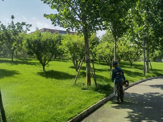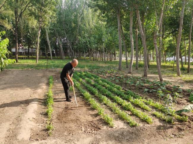 在二部园区,9:00,运营保障人员更换水表;11:00,绿化工作人员修缮菜园,种植有机蔬菜;13:00,餐饮工作人员擦洗大灶做保洁;14:00,餐饮工作人员利用短暂的午休时间开展公共安全卫生及食品安全生产培训。