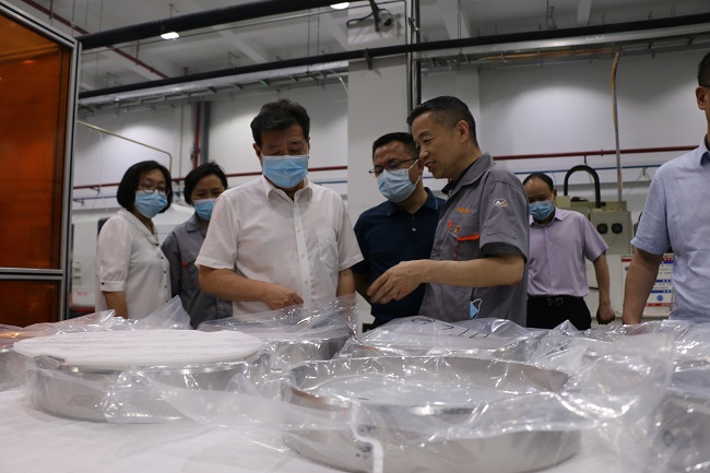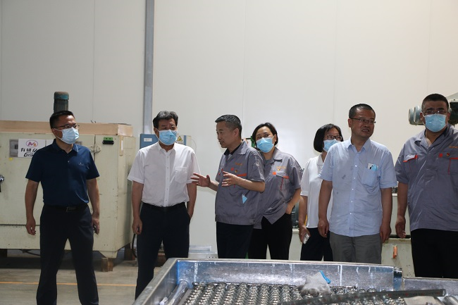 6月21日,有研集团党委委员、副总经理王臣一行到有研亿金调研疫情防控、防汛、山东亿金基地建设等工作。有研新材党委书记、董事长杨海陪同调研。