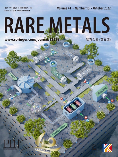 主办,有科期刊出版(北京)有限公司出版。目前被SCIE,EI,CSA,CAS,SCOPUS等国际著名检索系统或数据库列为收录源期刊,2021年度JCR影响因子6.318,位于国际冶金工程类Q1区,全球排名第六。致力于出版和传播稀有金属领域高水平研究成果,建立科学家和工程师之间的学术交流平台。报道内容涵盖稀有金属和有色金属选矿、冶炼、合金加工、材料研制和理化分析测试等方面的科研成果以及稀有金属在新材料(包括超导体、半导体、化合物和陶瓷)中的应用。《稀有金属(英文版)》是中国科技期刊卓越行动计划、中国科技期刊国际影响力提升计划、第六届中国科协优秀科技论文遴选计划入选期刊,获首届“百强报刊”、中国最具国际影响力学术期刊(蝉联十年)、中国有色金属学会学术期刊一等奖、中国科协主管科技期刊审读优级期刊等荣誉,是中国有色金属科技期刊集群旗舰刊,位于有色金属领域高质量科技期刊分级目录T1级。2017年代表中国期刊参加法兰克福国际书展。