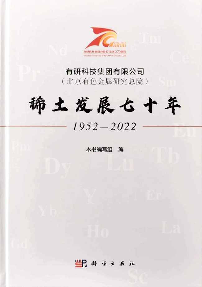 (北京有色金属研究总院) 稀土发展七十年 1952-2022》,并于日前在中国科学出版社正式出版发行。