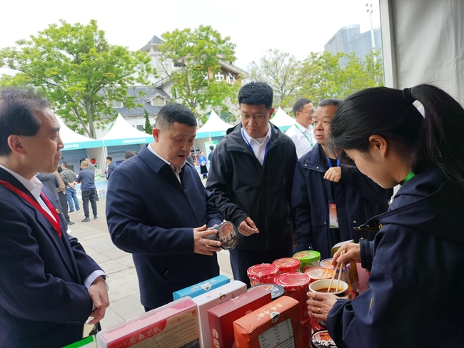 展位参观,并品尝来自思南县特色农特产品,对于集团围绕思南县“一主两辅”产业布局,开展补强产业链帮扶,助力思南农特产品“黔货出山”的成效表示认可。
