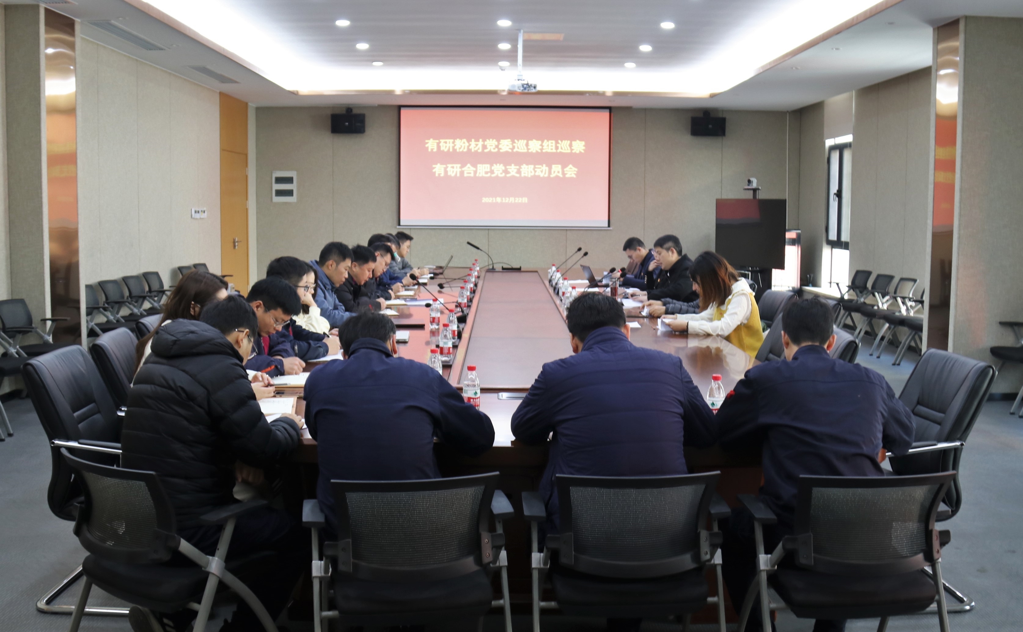 12月22日,有研粉材党委巡察有研合肥党支部工作动员会在有研合肥会议室召开,标志着合肥基地建设专项巡察现场检查工作正式启动。有研粉材党委副书记、纪委书记、巡察工作领导小组副组长、巡察组组长李联荣及巡察组全体成员、有研合肥党支部领导班子成员、有研合肥中层及以上管理人员、基地建设及招投标相关人员参加会议。