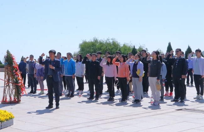 5月13日,全体党员来到西柏坡。在西柏坡纪念馆广场上,有研粉材党委向五大书记雕像敬献花篮。党委书记、董事长、总经理贺会军上前整理敬联,与全体同志一起向革命先烈鞠躬致敬。全体党员还重温了入党誓词,大家高举右拳,在鲜艳的党旗下庄严宣誓,声声入耳、字字入心。