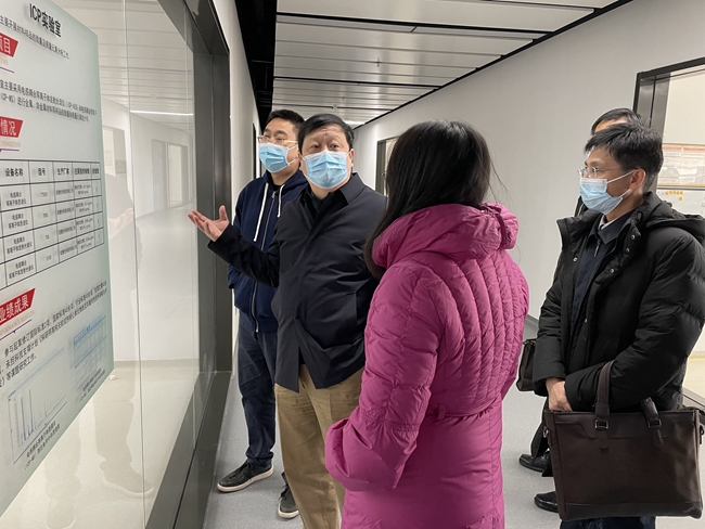 曹泊宇一行在国合通测总经理赵春雷、党委书记周厚旭陪同下,察看了主中心各实验室建设,实地了解情况。