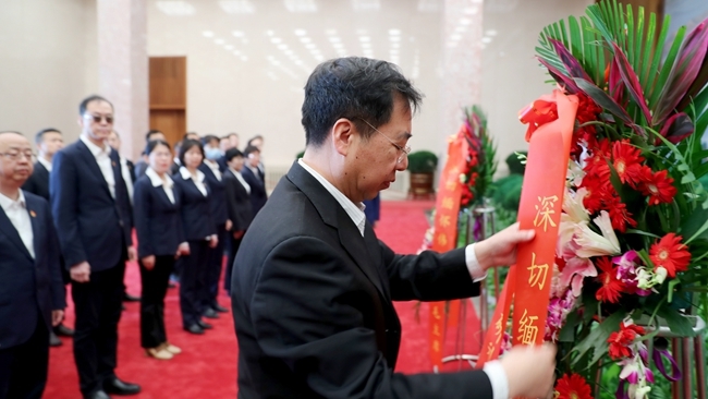 在纪念堂工作人员的引导下,全体参观同志向毛主席坐像敬献花篮并三鞠躬,随后瞻仰毛主席遗容,在宣教厅观看毛主席纪念堂专题片,聆听《彩云长在有新天》的现场宣讲,参观毛主席纪念室和藏品陈列室。