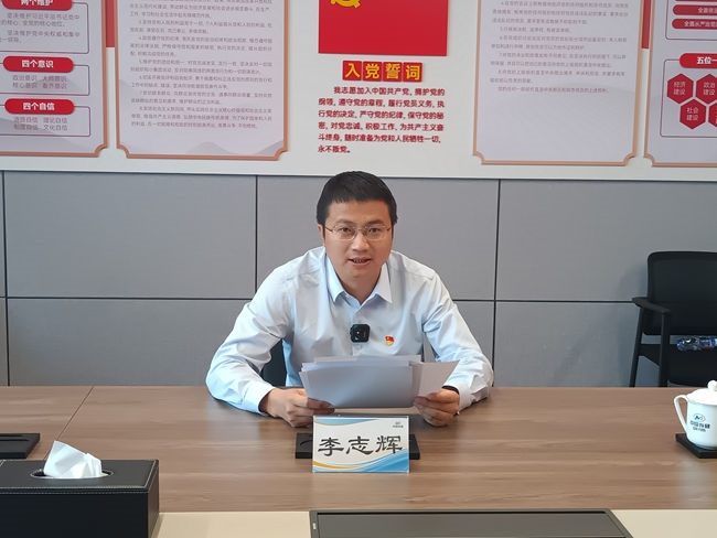 副总经理、职能第一党支部书记李志辉为集团职能部门讲授专题党课。职能第一党支部全体党员参会听讲。