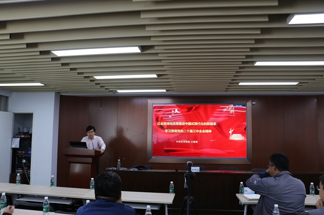 签约仪式后,公司党总支邀请中央党校(国家行政学院)王海滨教授为全体党员进行了专题讲座。王海滨教授以“深入学习贯彻党的二十届三中全会精神”为主题,从全会核心内容、三大板块、15个部分及60条具体措施等方面进行了全面、深入的解读。他紧密联系实际工作场景,生动阐释了会议精神的实质,并强调要将这些精神内化于心、外化于行,转化为推动企业改革与发展的重要动力。