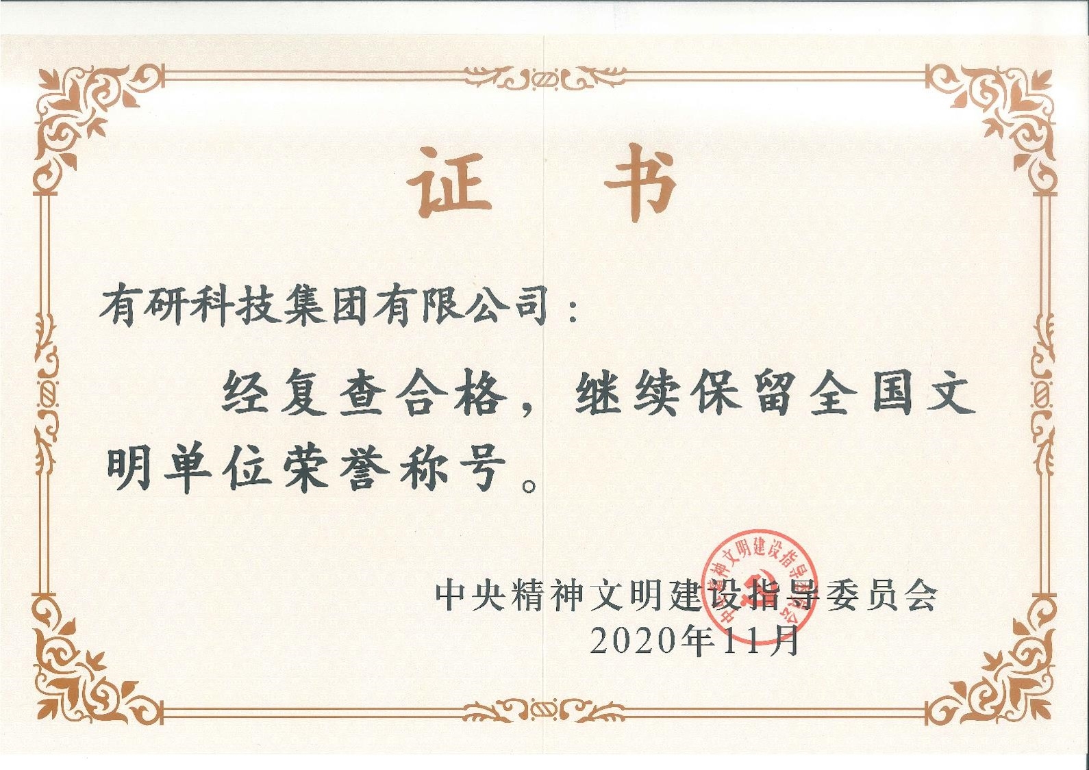 近日,有研集团顺利通过第六届“全国文明单位”复查,继续保留“全国文明单位”荣誉称号!全国文明单位荣誉称号每三年复查确认一次,有研集团自2011年获得“全国文明单位”荣誉称号以来,2014、2017年先后通过复查,2020年再次通过复查,继续保留荣誉称号。