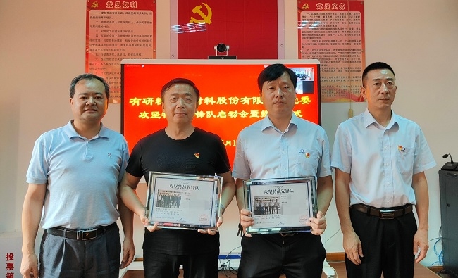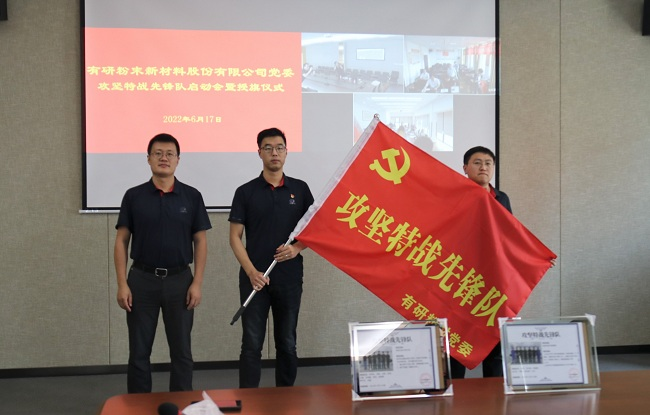 6月17日,有研粉材党委按照“稳增长、防风险、促改革、强党建”工作要求,围绕公司2022年度重点工作,启动“攻坚特战先锋队”授旗仪式。会议采取线上线下相结合的方式进行,分为粉材主会场、合肥分会场和重冶分会场。党委副书记、纪委书记李联荣主持会议。