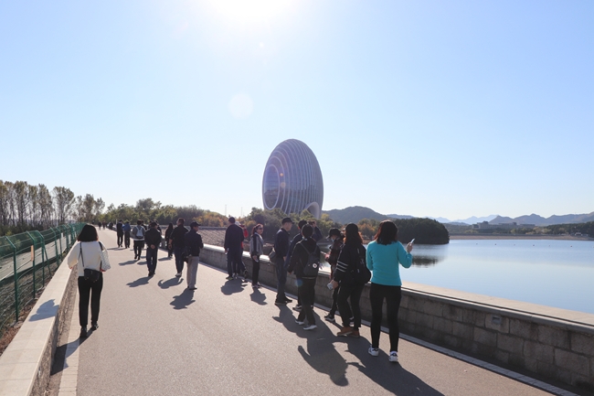下午,认可中心一行与国合通测相关同志前往雁栖湖环湖步道,开展了7公里的健步长走活动。天朗气清、层林尽染、湖波荡漾,双方成员边走边交流,咨询问题、探讨业务、磋商合作,进一步增进与国家权威认可机构交流,为今后合作共建,建立互动、互学、互帮的有效机制奠定了基础。