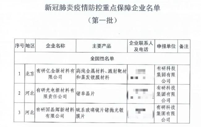 新冠肺炎疫情发生以来,有研新材积极履行社会责任,以最快速度、最大限度为合作客户提供防疫物资生产所需产品和服务,强有力的保障了防疫物资供给,为全社会人民群众抗击新冠疫情做出了积极贡献。有研亿金、有研光电、有研国晶辉作为疫情防控重点保障企业,入选“工信部第一批新冠肺炎疫情防控重点保障企业名单”;有研光电锗晶体生产部被国资委授予“中央企业抗击新冠肺炎疫情先进集体”称号。