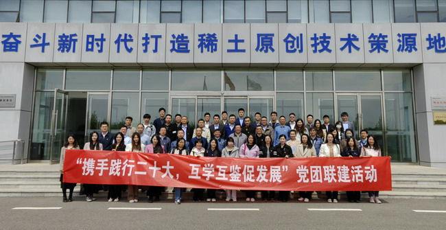 四家单位的党员干部、团员青年共计60余人参加了座谈交流,并一同参观了有研稀土展厅、院士工作站与燕郊产业基地。