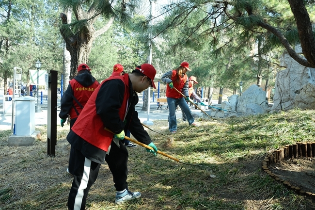 随后,青年志愿者们在公园管理员的指导下开展绿植养护志愿工作。志愿者们用草耙将草坡中的残枝败叶耙出,收集成堆后再装进垃圾袋进行处理。此次志愿团日活动受到了广大团员青年的积极参与和热烈好评,团员青年从中既学到了绿植养护的相关知识,又能将其付诸于劳动实践。