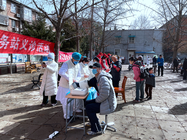 有研卫生站医务人员义务为社区居民测量血糖、血压,现场分析测压情况,详细讲解预防、治疗高血压的医学知识,叮嘱居民养成良好的生活习惯,保持身体健康。